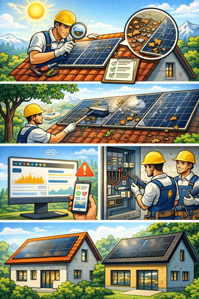 Eine Photovoltaikanlage arbeitet über viele Jahre zuverlässig, benötigt jedoch etwas Pflege, damit der Ertrag dauerhaft hoch bleibt. Mit einfachem Unterhalt und einer guten Überwachung lassen sich Störungen früh erkennen und die Lebensdauer der Anlage verlängern.